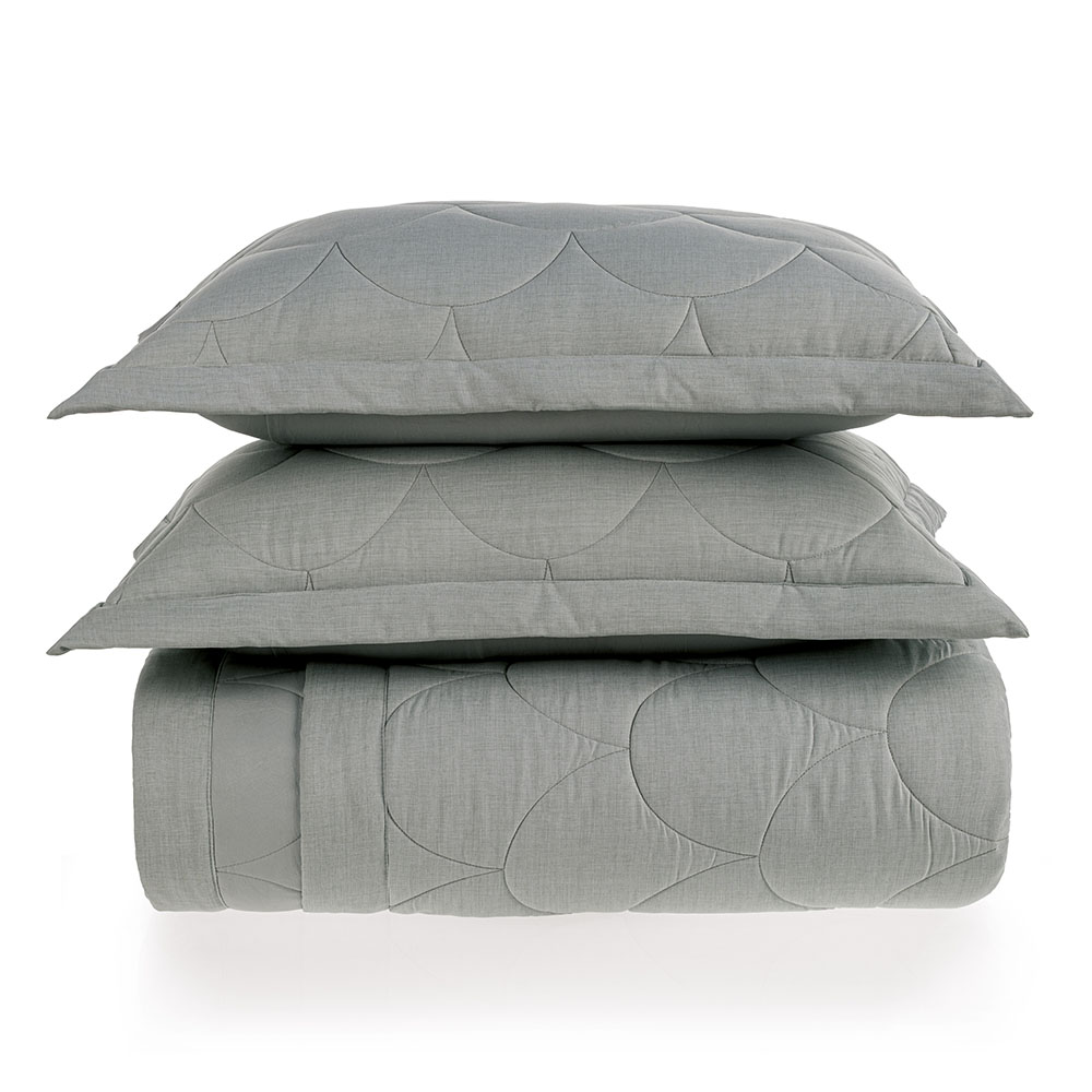 Atributos Tecido efeito mescla; Acabamento com bordo de 7cm; Cantos quadrados; Matelassado geométrico; Porta-travesseiro com 3 abas de 5cm; Manta de enchimento de 170g/m²