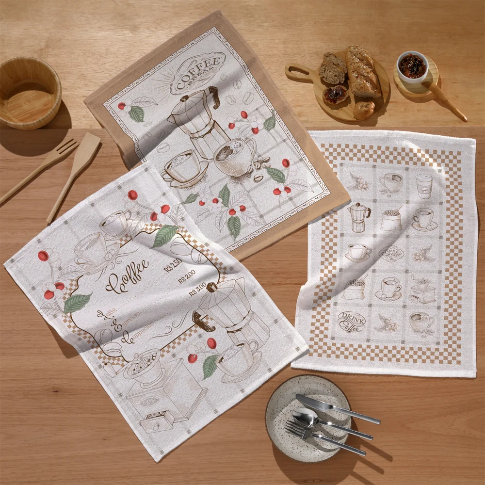 Modelo Kit Pano de Prato Felpudo Atoalhado Hora do Café