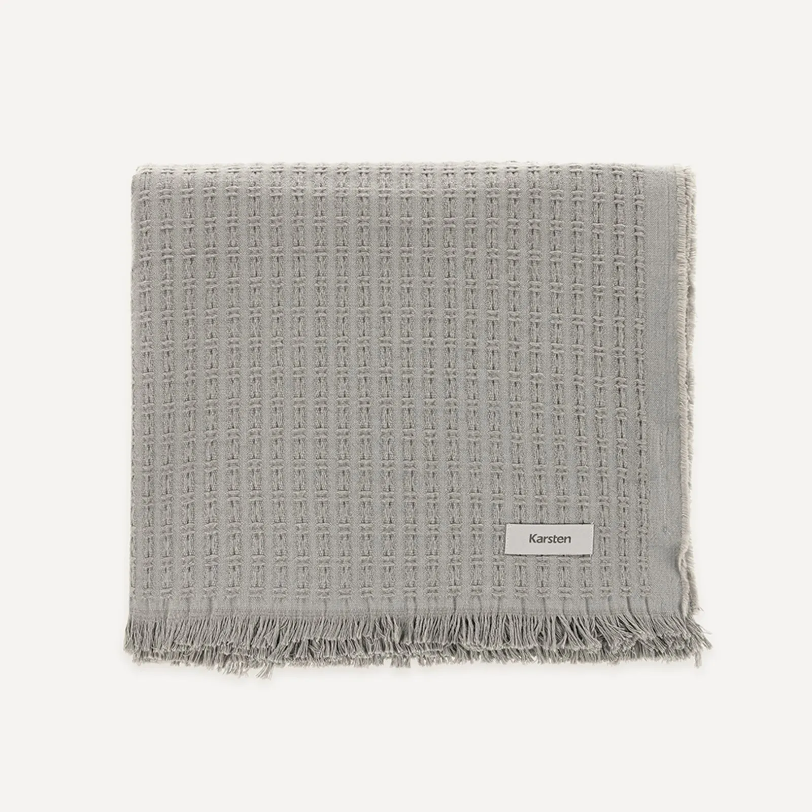Atributos Manta com acabamento em franjas; Toque ultra macio; Etiqueta decorativa Karsten
