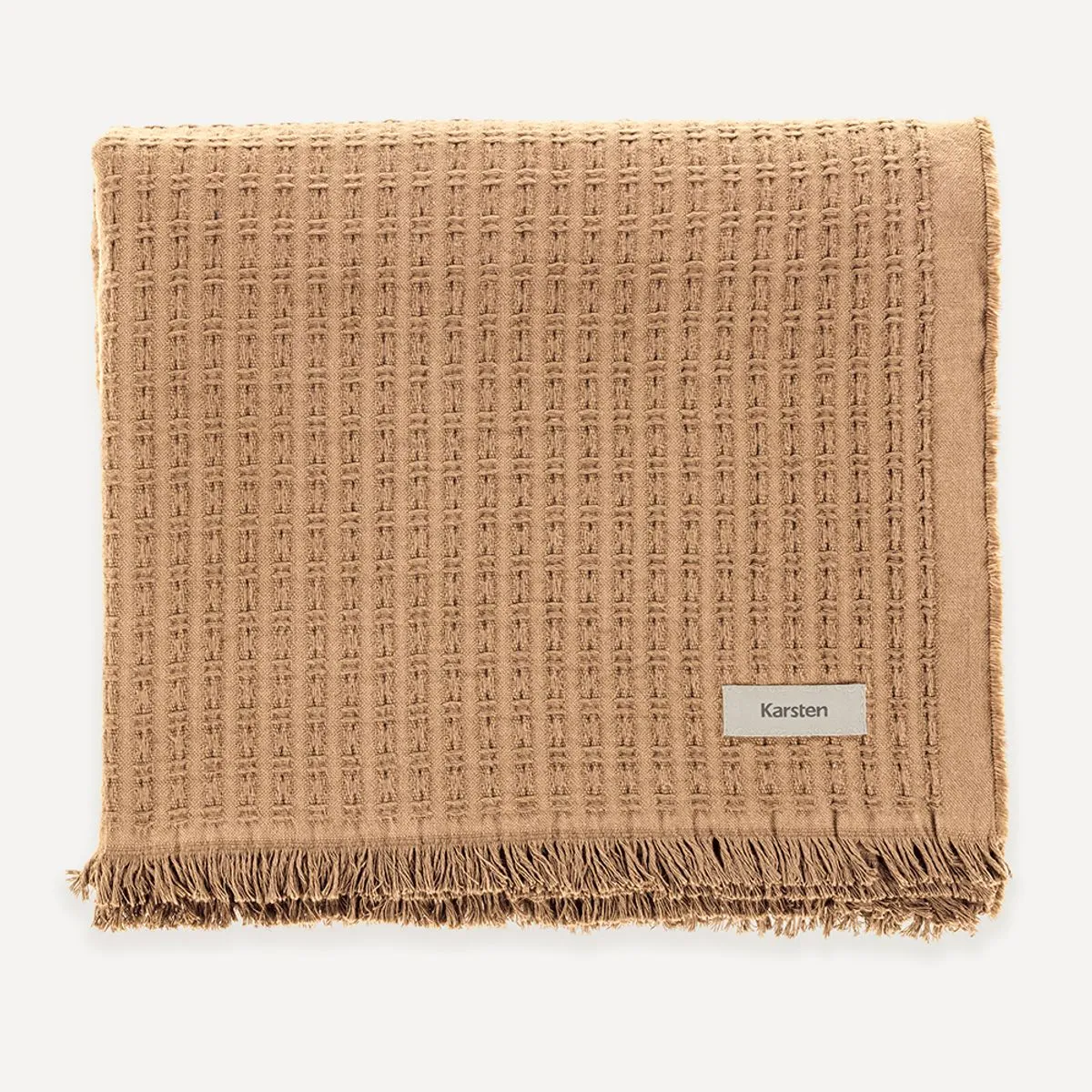 Atributos Manta com acabamento em franjas; Toque ultra macio; Etiqueta decorativa Karsten