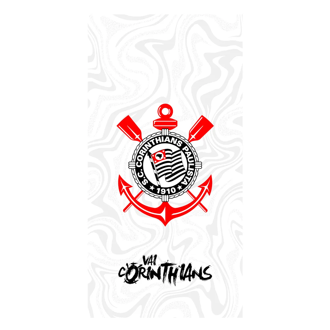 -01 (uma) Toalha de Banho e Praia Döhler Oficial Corinthians Branca com 70 cm x 1,40 m.