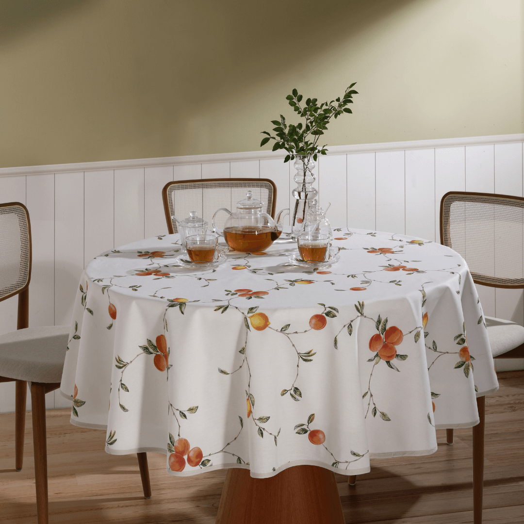 - 01 (uma) Toalha de Mesa Redonda Döhler Clean Pêssegos de 1,60 m.